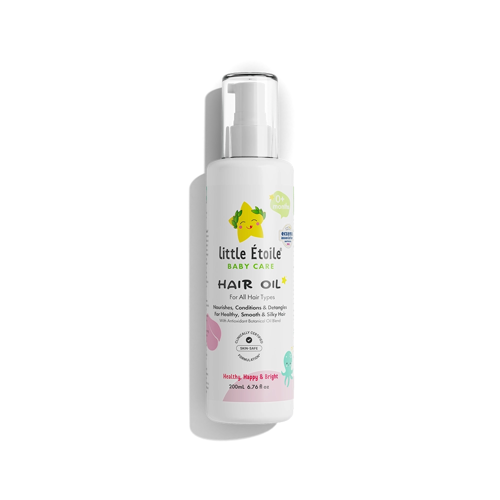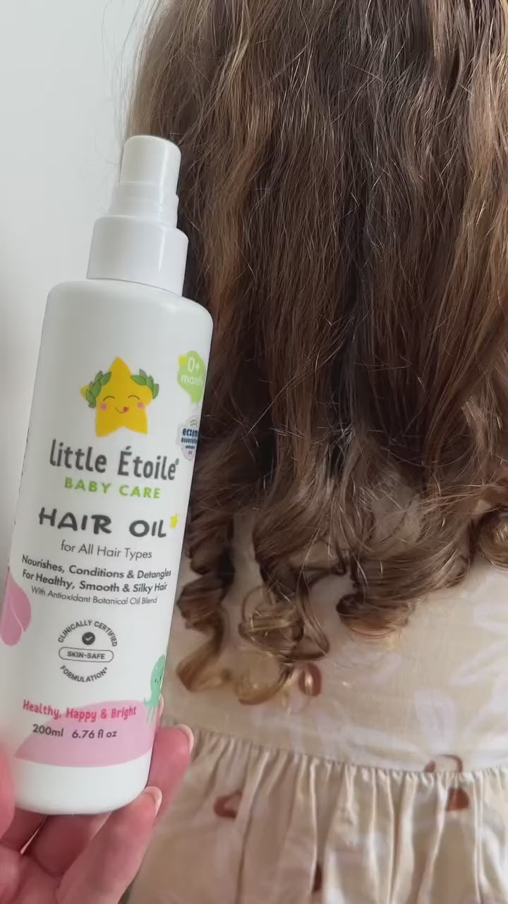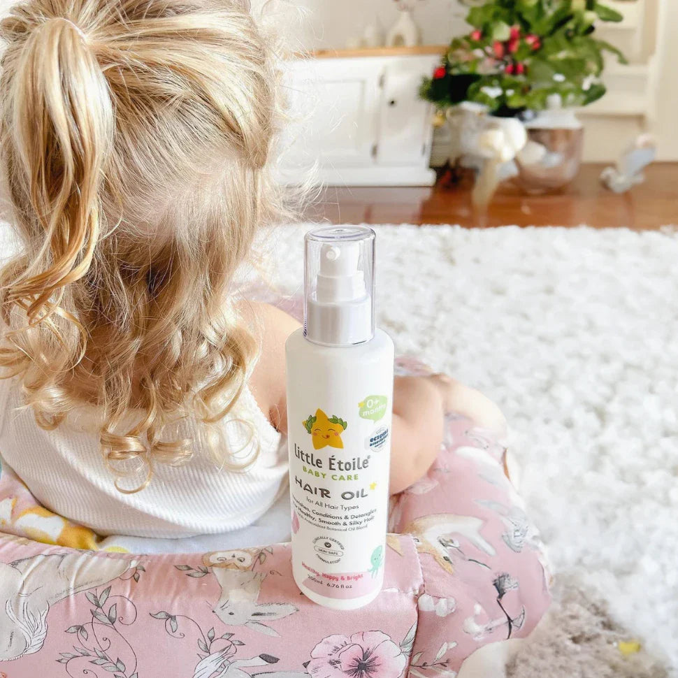 Our multi-action Baby Care Hair Oil nourishes and protects hair as it gently detangles, reducing dryness and static. Lovingly crafted to help your little stars shine from the top down!