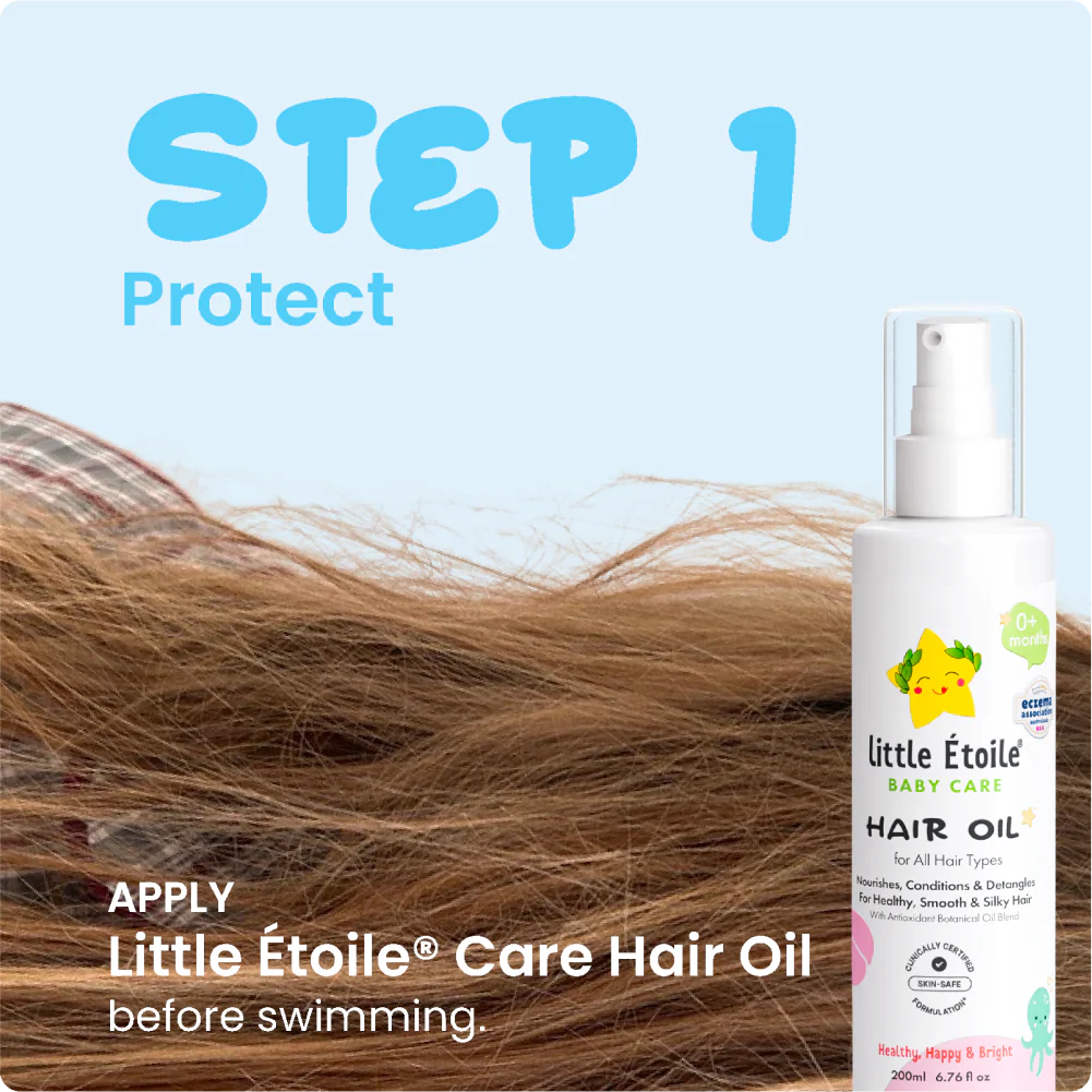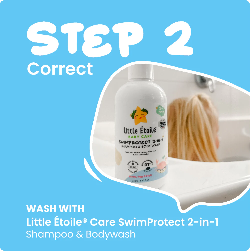 In a clinical laboratory study conducted by an OECD accredited testing facility in Europe, Little Étoile® Care SwimProtect 2-In-1 was shown to be safe for human eyes, measured to be within the acceptable range (average of 2.8/80 on a damage scale).
