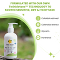 - TwinkleToesTM technology of Oat, Calendula, Panthenol & Glycerin designed to reduce dryness, soothe itches and encourage skin repair in eczema prone areas such as elbows, legs, skin folds and where moisture is retained.