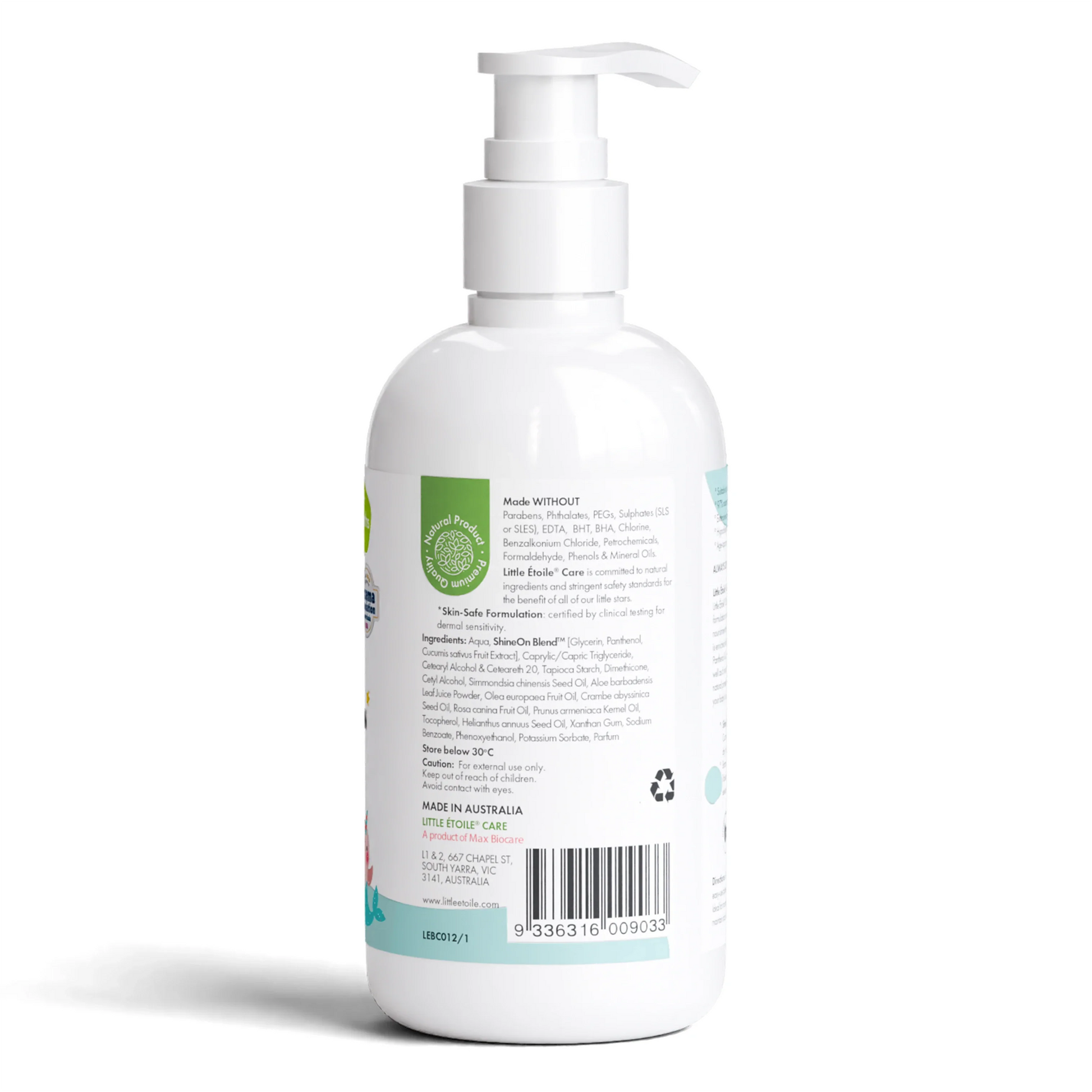 Little Étoile Nourishing Lotion was shown to be safe on sensitive skin in a study conducted by an accredited dermatology clinic on 54 Australian subjects. It showed no signs of skin irritation (score of 0/4 on a skin irritation scale) after contact with upper arm skin over 24 hrs, compared to distilled water. Read full report.(Reference: Ozderm Pty Ltd. 20230914, protocol MBC01, pp1-23)