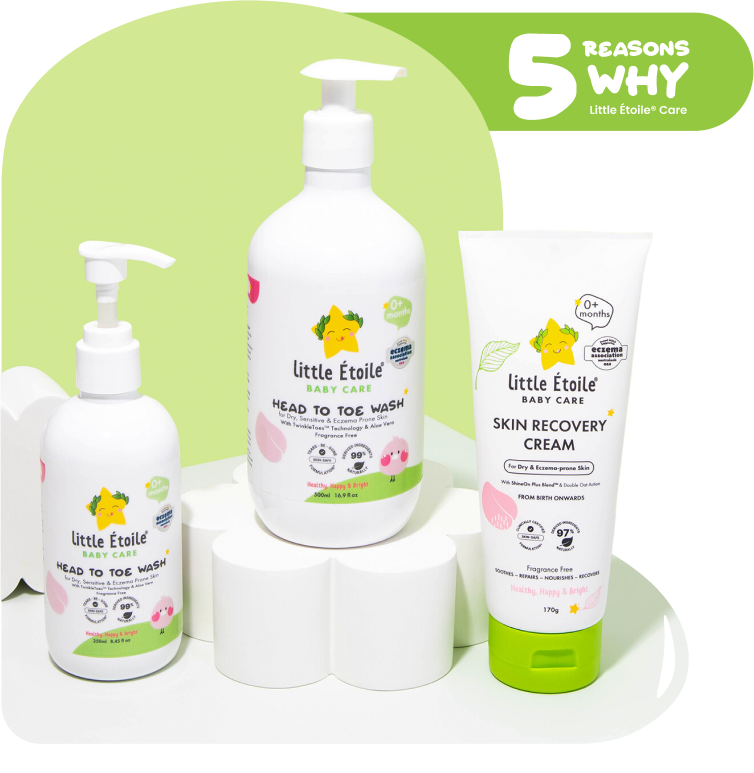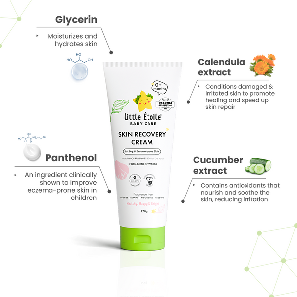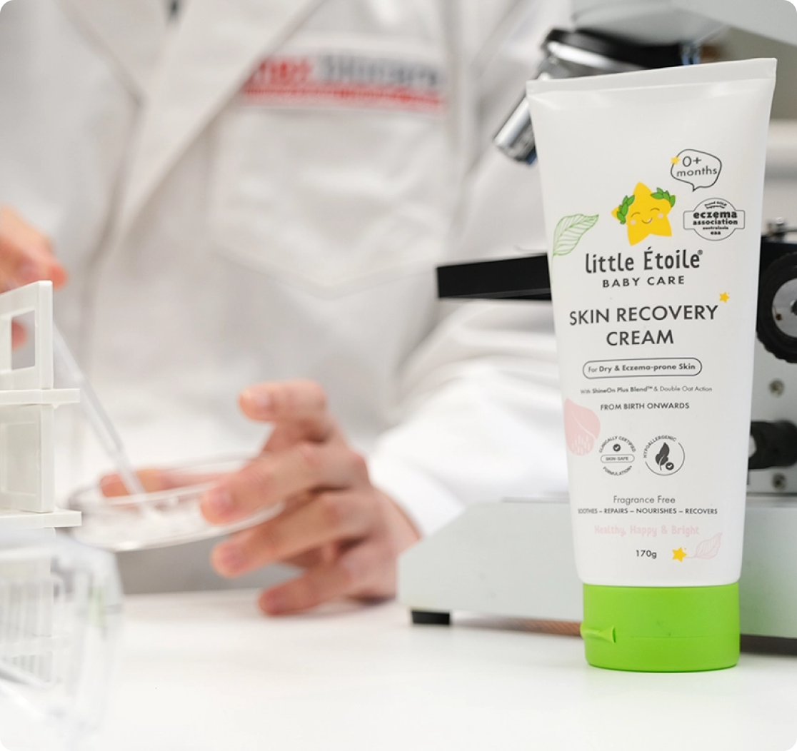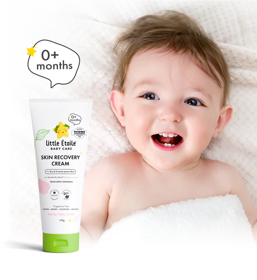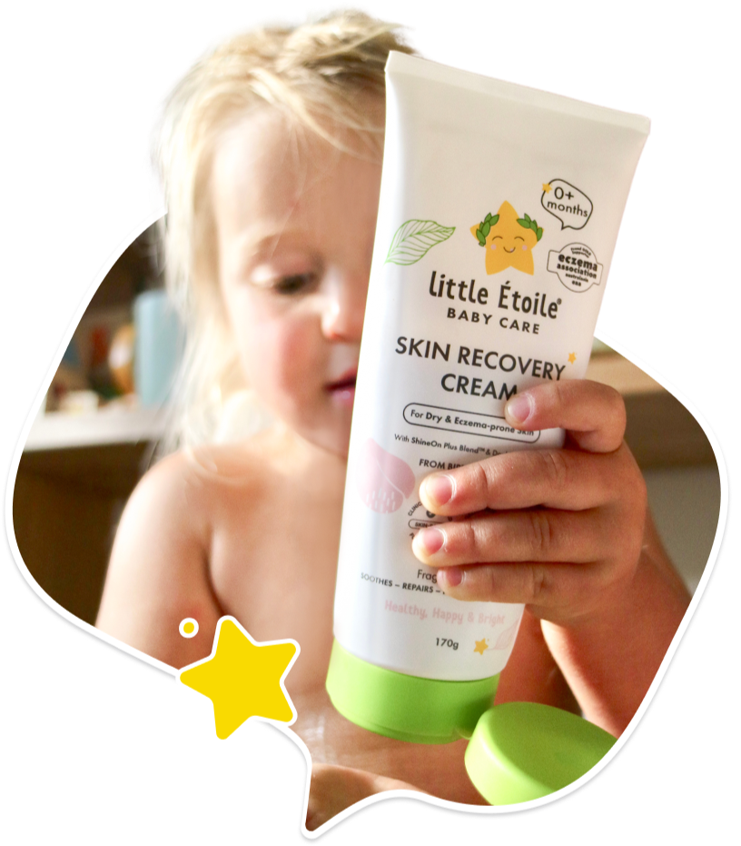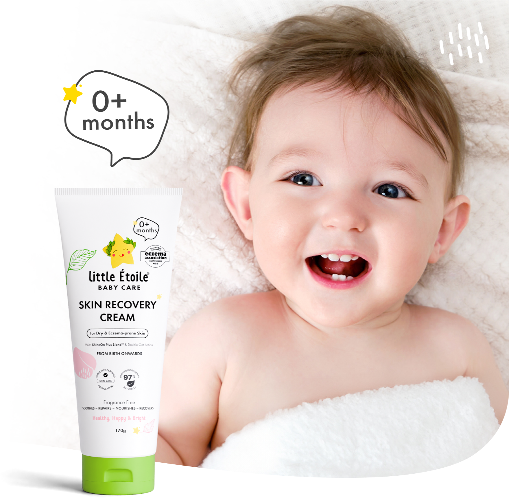 In the first years of life, baby skin is still developing — which means it’s more vulnerable. That’s why we created Little Étoile® Skin Recovery Cream: a steroid-free rich, intensive formula made to soothe, rehydrate, and protect sensitive, eczema-prone skin.