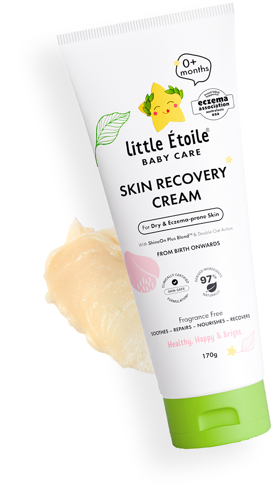Little Étoile Skin Recovery Cream for Dry & Eczema-prone Skin (0+ Months) was shown to be safe for sensitive skin in a study conducted by an accredited dermatology clinic on 54 Australian subjects. It showed no signs of skin irritation (score of 0/4 on a skin irritation scale) after contact with upper arm skin over 24 hrs, compared to distilled water.Read full report.(Reference: Ozderm Pty Ltd. 20230914, protocol MBC01, pp1-23).