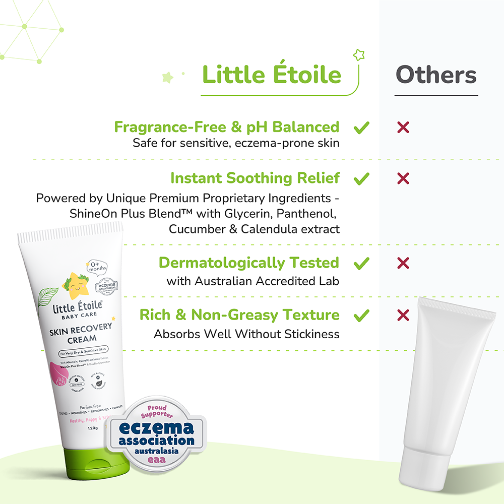 Safety first with Little Étoile® Care - Skin Recovery Cream For Dry & Itchy Skin has been dermatologically tested and is safe for sensitive skin.