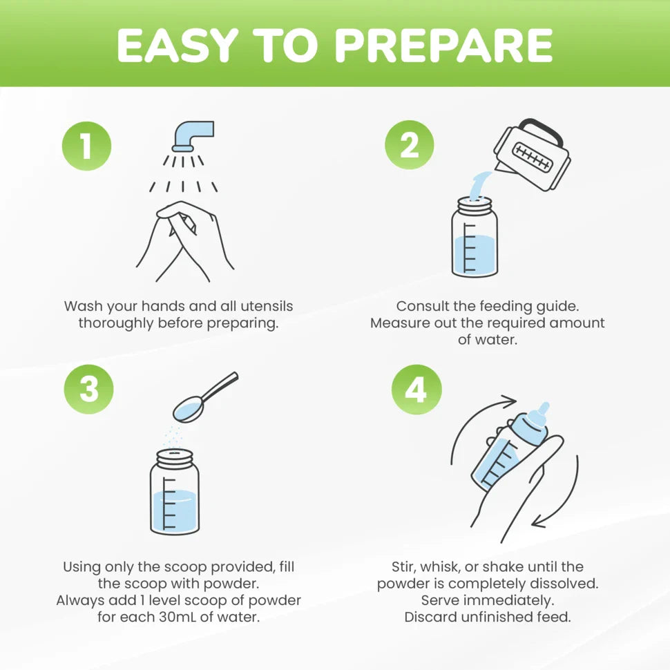 1 level scoop = 7g of powder to 30mL water. Note that dosages may vary according to your child’s needs. Consult with your healthcare professional on your child’s specific nutritional needs.